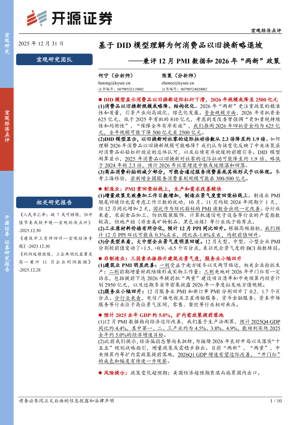 【开源证券】【202512】兼评12月PMI数据和2026年“两新”政策:基于DID模型理解为何消费品以旧换新略退坡-10页