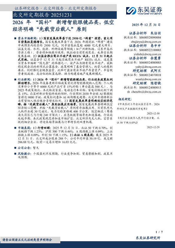 北交所 低空经济 REITs试点 国补政策 智能眼镜
