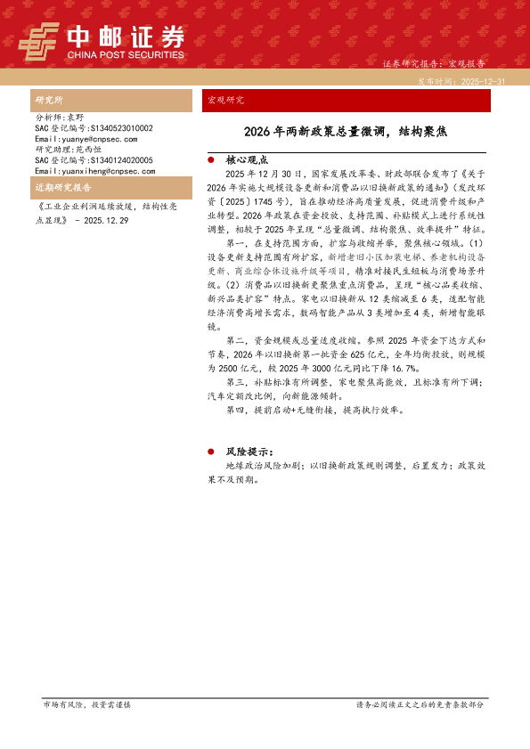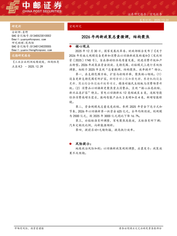 【中邮证券】【202512】2026年两新政策总量微调,结构聚焦-8页