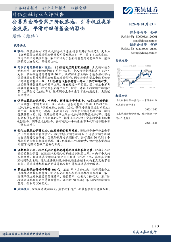 【东吴证券】【202601】非银金融行业点评报告:公募基金降费第三阶段落地,引导权益类基金发展,平滑对短债基金的影响-3页