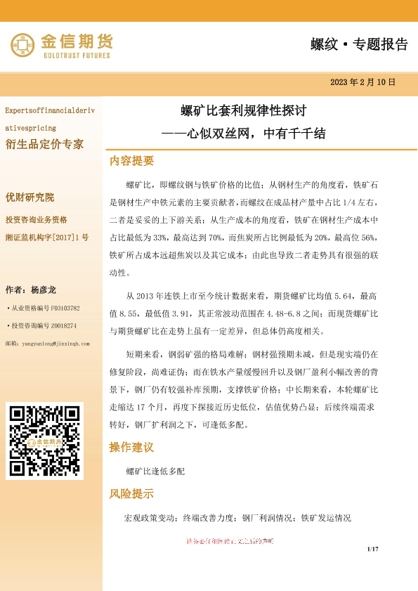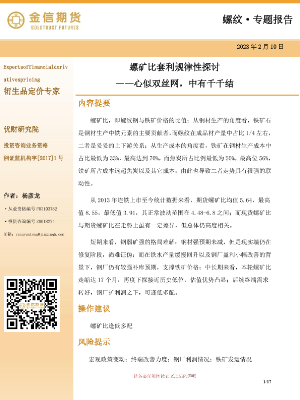 【金信期货】【20230210】螺矿比套利规律性探讨:心似双丝网,中有千千结-17页