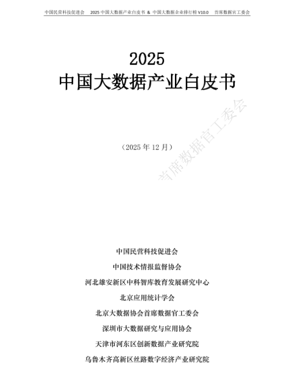 【中国民营科技促进会&中国技术情报监督协会&河北雄安新区中科智库教育发展研究中心&北京应用统计学会&北京大数据协会首席数据官工委会&深圳市大数据研究与应用协会&天津市河东区创新数据产业研究院&乌鲁木齐高新区丝路数字经济产业研究院】【202512】2025中国大数据产业白皮书&中国大数据企业排行榜 V10.0-141页