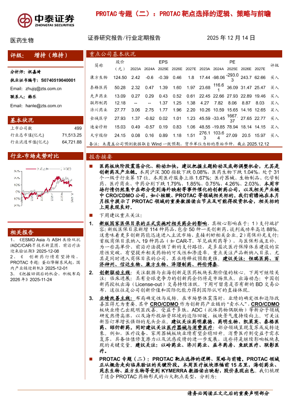 【中泰证券】【202512】医药生物行业PROTAC专题(二):PROTAC靶点选择的逻辑、策略与前瞻-27页