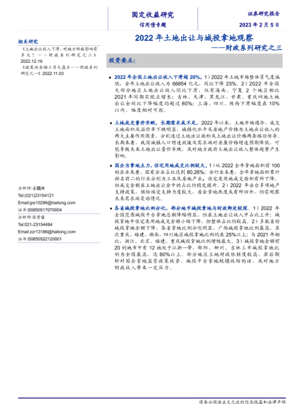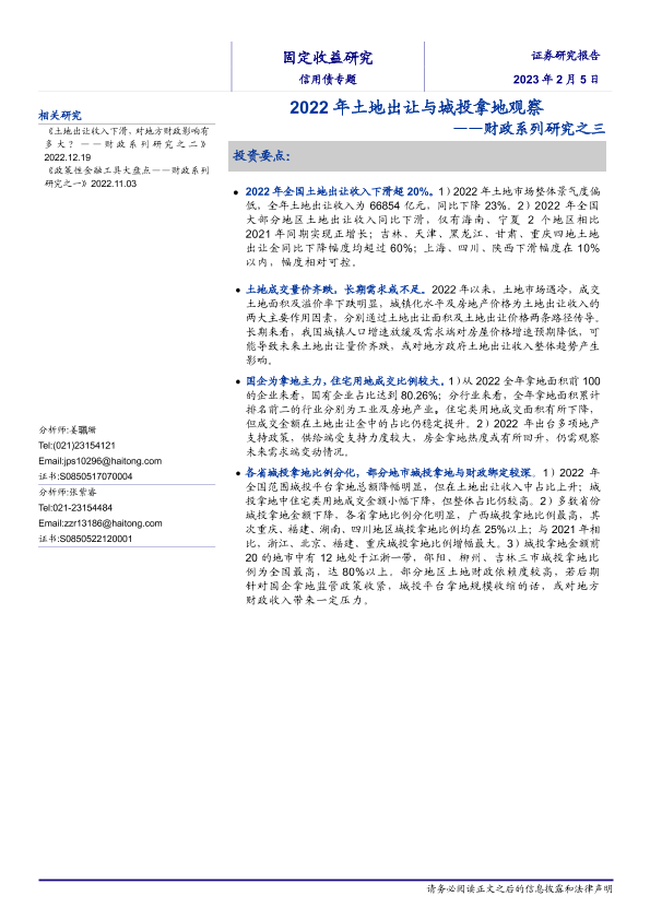【海通证券】【20230205】2022年土地出让与城投拿地观察-16页