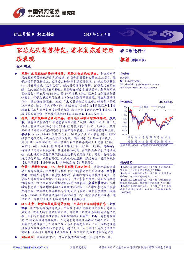【银河证券】【20230207】轻工制造行业月报:家居龙头蓄势待发,需求复苏看好后续表现-21页