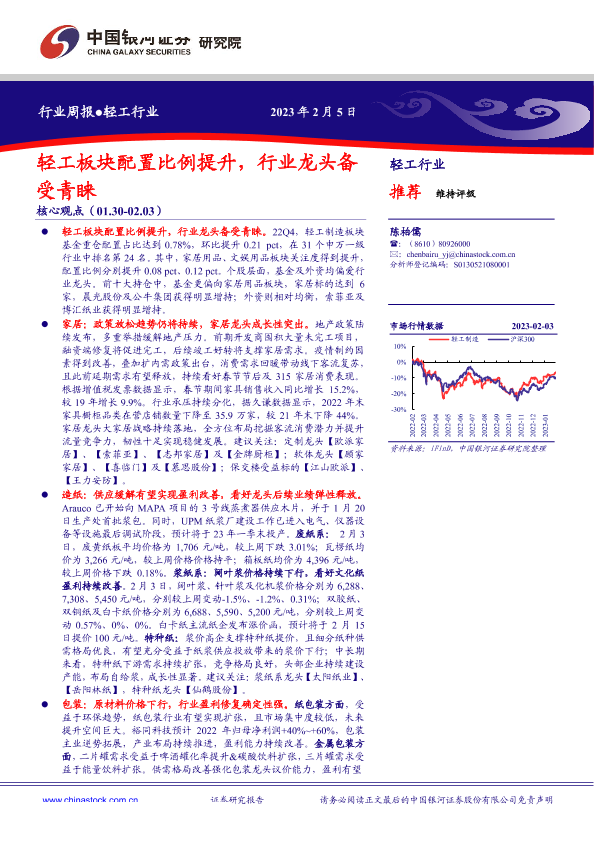 【银河证券】【20230205】轻工行业周报:轻工板块配置比例提升,行业龙头备受青睐-29页