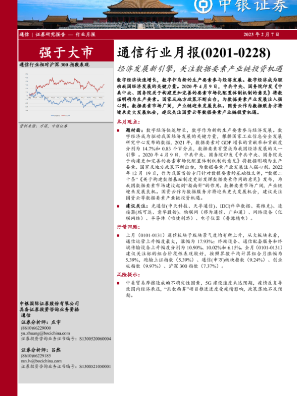 【中银证券】【20230207】通信行业月报:经济发展新引擎,关注数据要素产业链投资机遇-25页