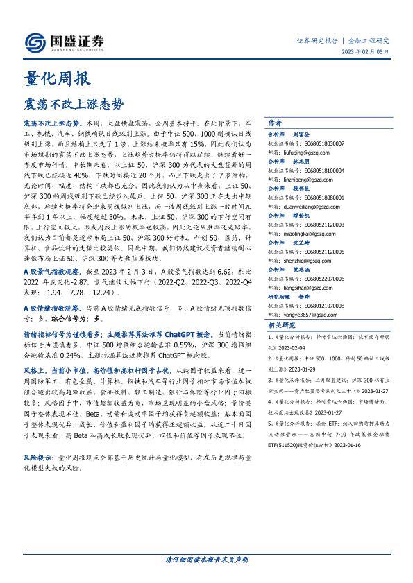 【国盛证券】【20230205】量化周报:震荡不改上涨态势-24页
