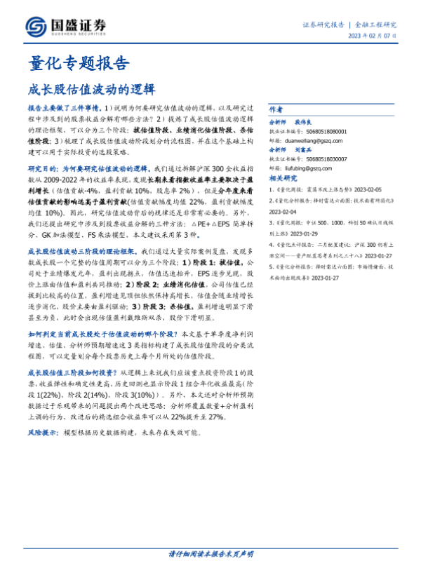【国盛证券】【20230207】量化专题报告:成长股估值波动的逻辑-26页