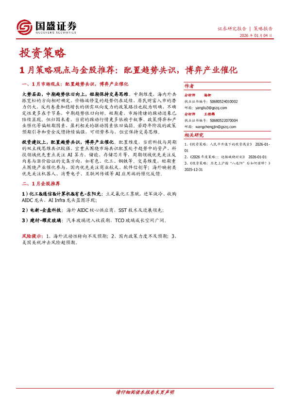 【国盛证券】【202512】1月策略观点与金股推荐:配置趋势共识,博弈产业催化-7页