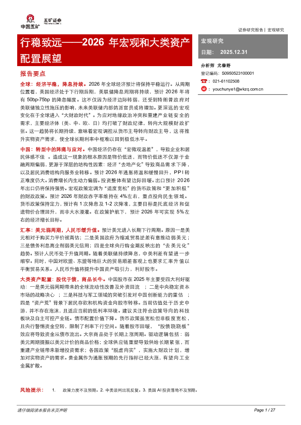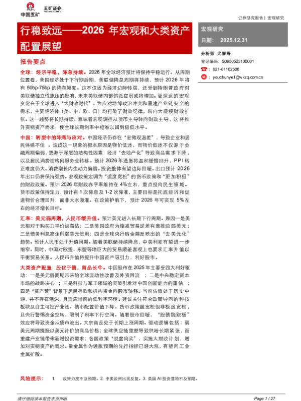【五矿证券】【202512】行稳致远——2026年宏观和大类资产 配置展望-27页