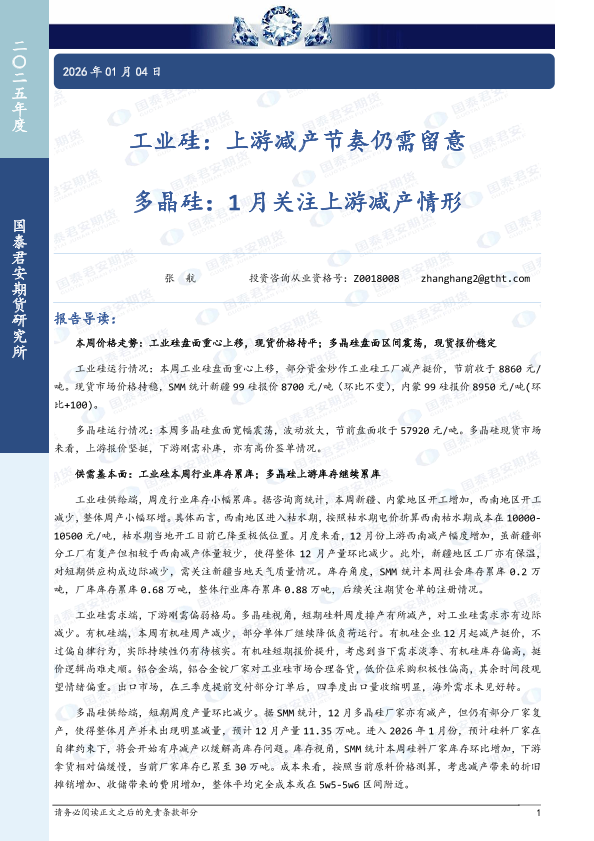 【国泰君安期货】【202512】工业硅_上游减产节奏仍需留意_多晶硅_1月关注上游减产情形-10页