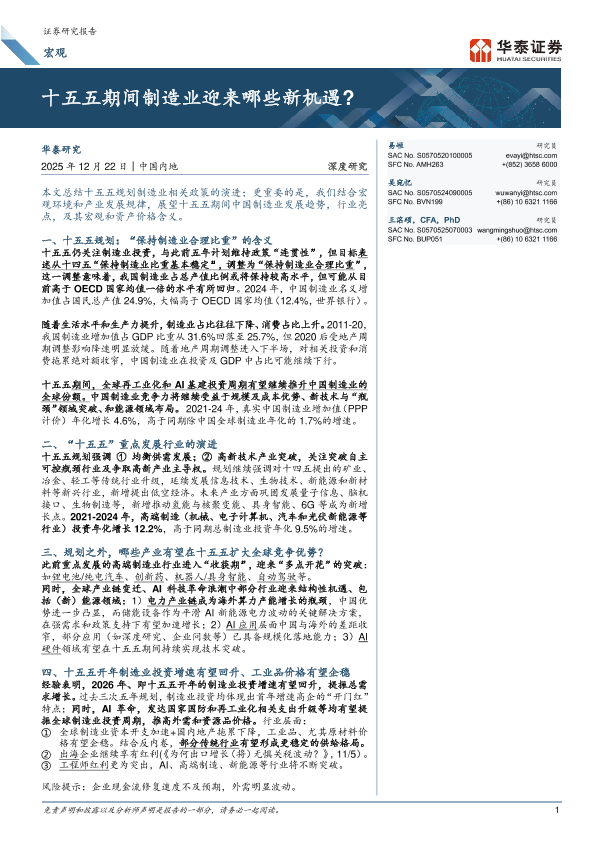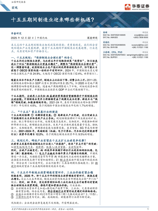 【华泰证券】【202512】十五五期间制造业迎来哪些新机遇?-21页