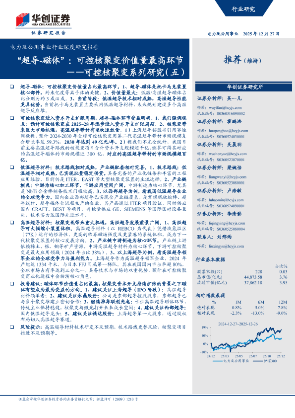 【华创证券】【2025】“超导-磁体”:可控核聚变价值量最高环节——可控核聚变系列研究(五)-44页