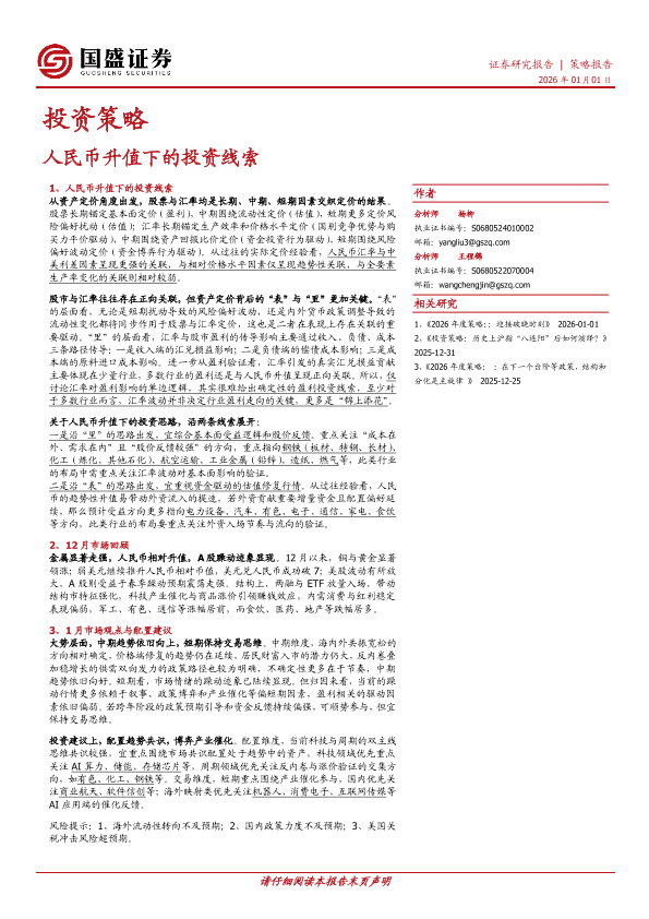 【国盛证券】【202601】人民币升值下的投资线索-11页
