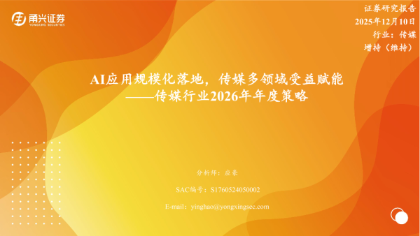 【甬兴证券】【202512】AI应用规模化落地,传媒多领域受益赋能 ——传媒行业2026年年度策略-23页