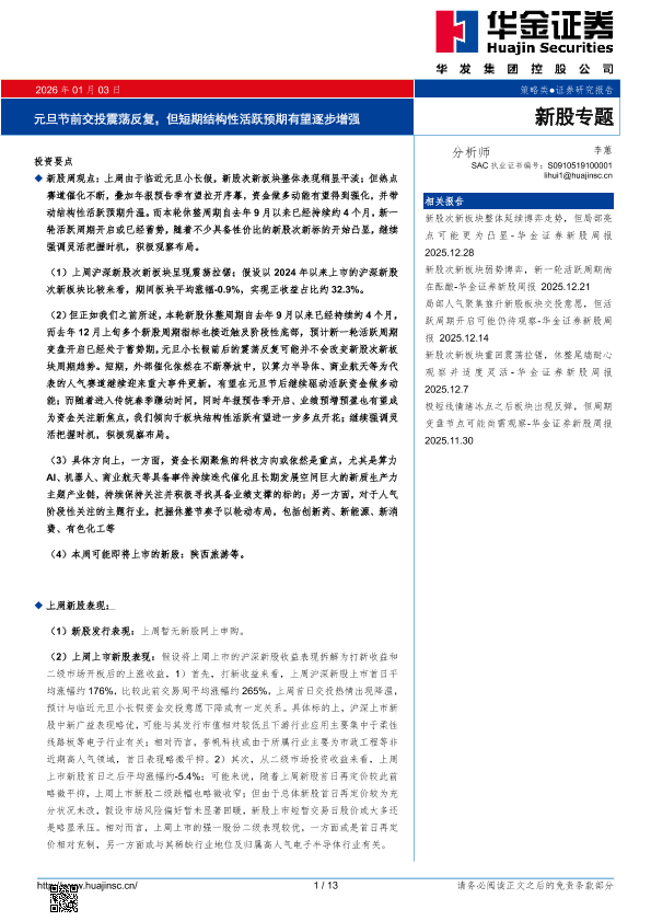 【华金证券】【202512】元旦节前交投震荡反复,但短期结构性活跃预期有望逐步增强-13页