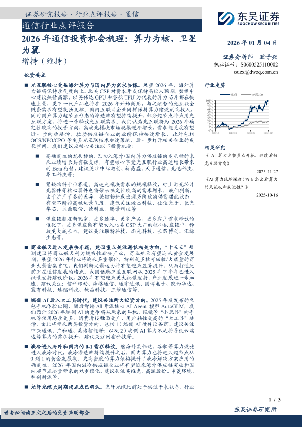 【东吴证券】【202601】2026年通信投资机会梳理:算力为核,卫星为翼-3页