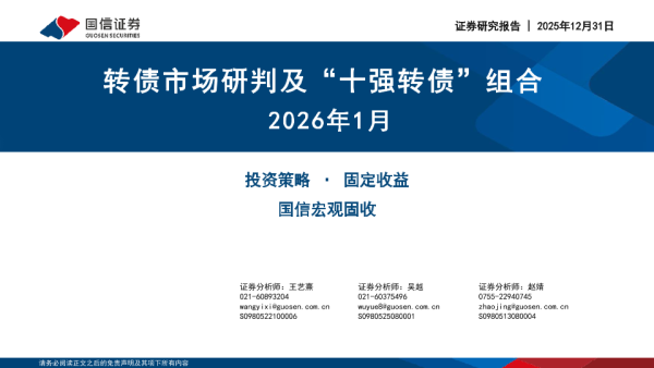 【国信证券】【202601】2026年1月转债市场研判及“十强转债”组合-30页