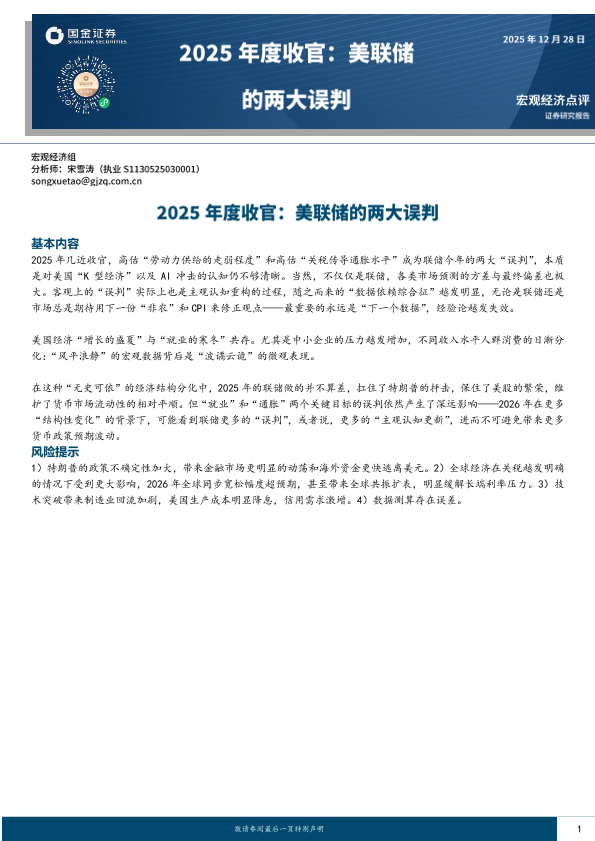 【国金证券】【2025】2025年度收官 美联储的两大误判-10页