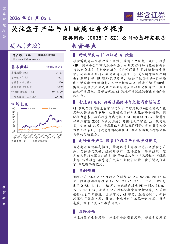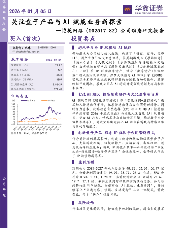 【华鑫证券】【202601】关注盒子产品与AI赋能业务新探索—恺英网络(002517.SZ)公司动态研究报告-5页