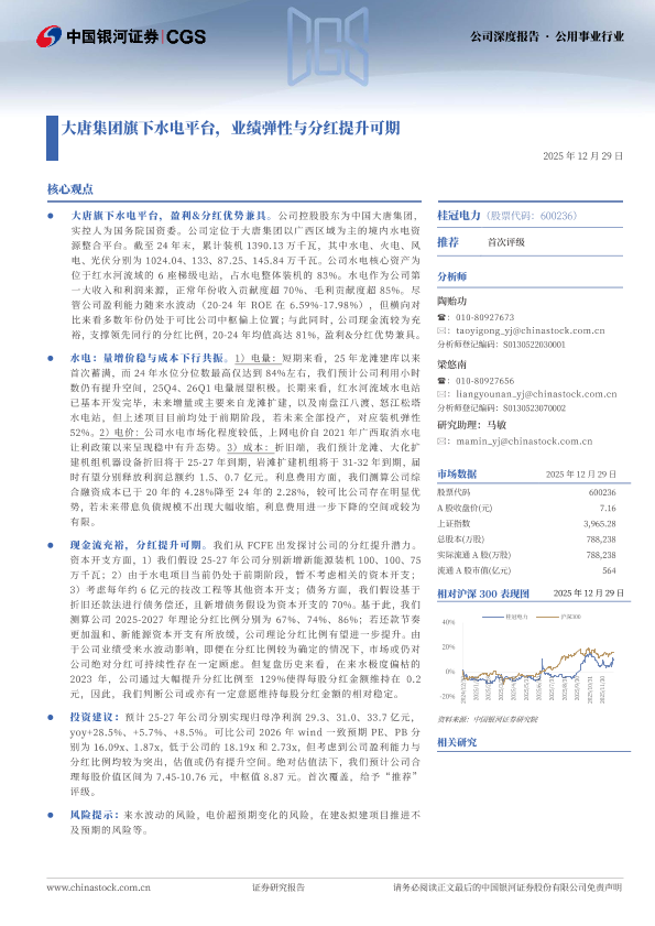 【银河证券】【202512】大唐集团旗下水电平台,业绩弹性与分红提升可期-32页