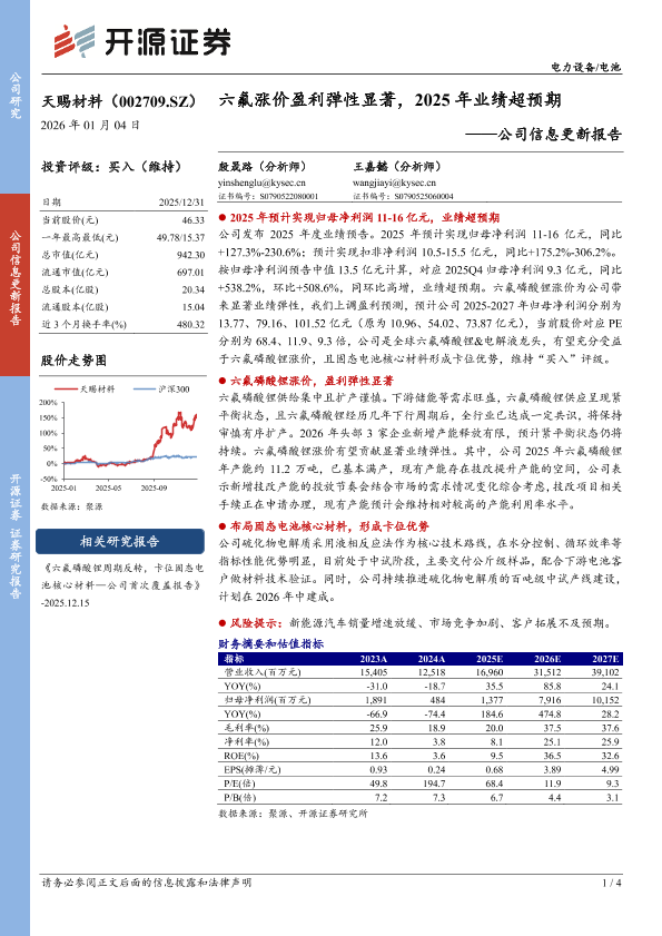 【开源证券】【202601】公司信息更新报告:六氟涨价盈利弹性显著,2025年业绩超预期-4页