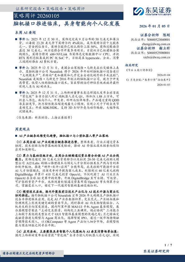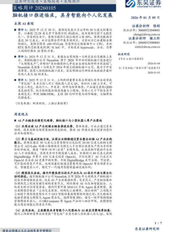 【东吴证券】【202601】策略周评 20260105 脑机接口推进临床,具身智能向个人化发展-7页