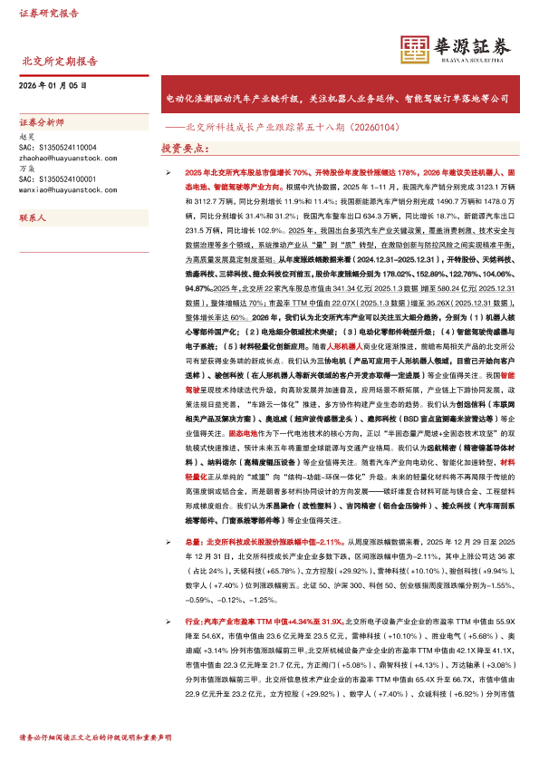 【华源证券】【202601】电动化浪潮驱动汽车产业链升级,关注机器人业务延伸、智能驾驶订单落地等公司-20页