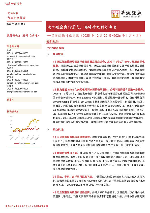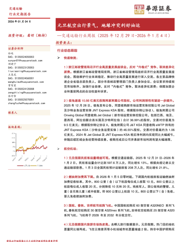 【华源证券】【202601】元旦航空出行景气,地缘冲突利好油运-17页