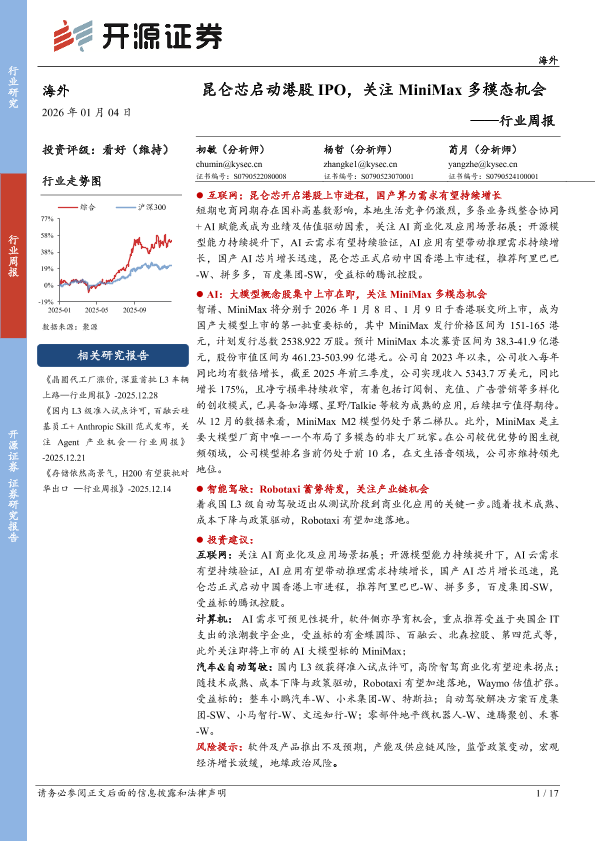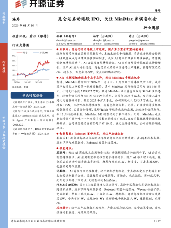 【开源证券】【202601】海外行业周报:昆仑芯启动港股IPO,关注MiniMax多模态机会-17页
