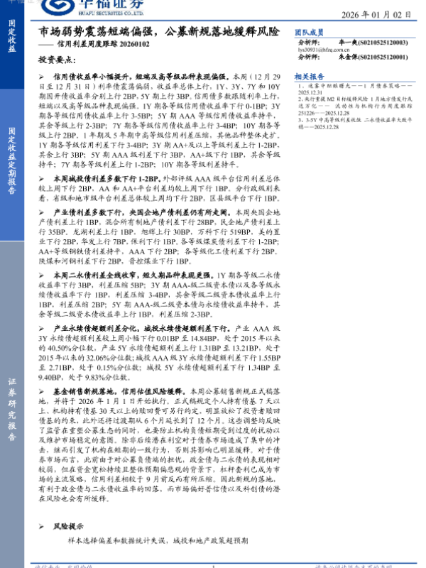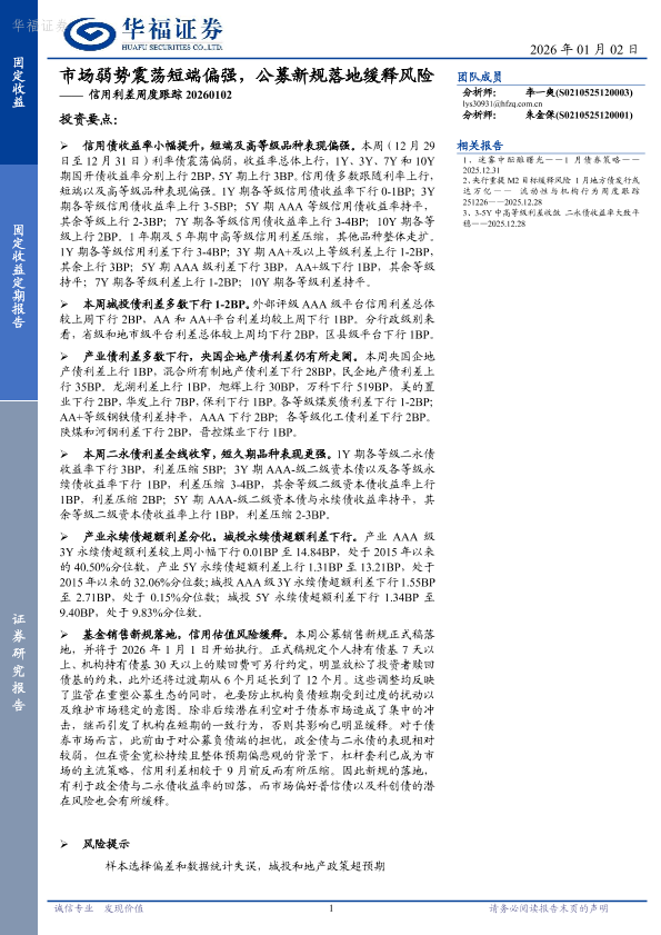 【华福证券】【20260102】20260102-华福证券-信用利差周度跟踪_市场弱势震荡短端偏强_公募新规落地缓释风险_10页_1mb.pdf-10页