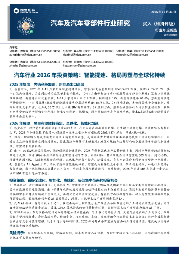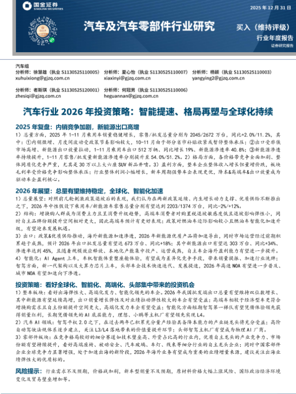 出口增长 全球化 智能驾驶 新能源车 汽车行业