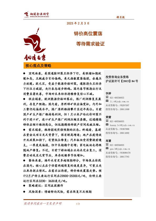 【铜冠金源期货】【20230203】锌月报:锌价高位震荡,等待需求验证-21页
