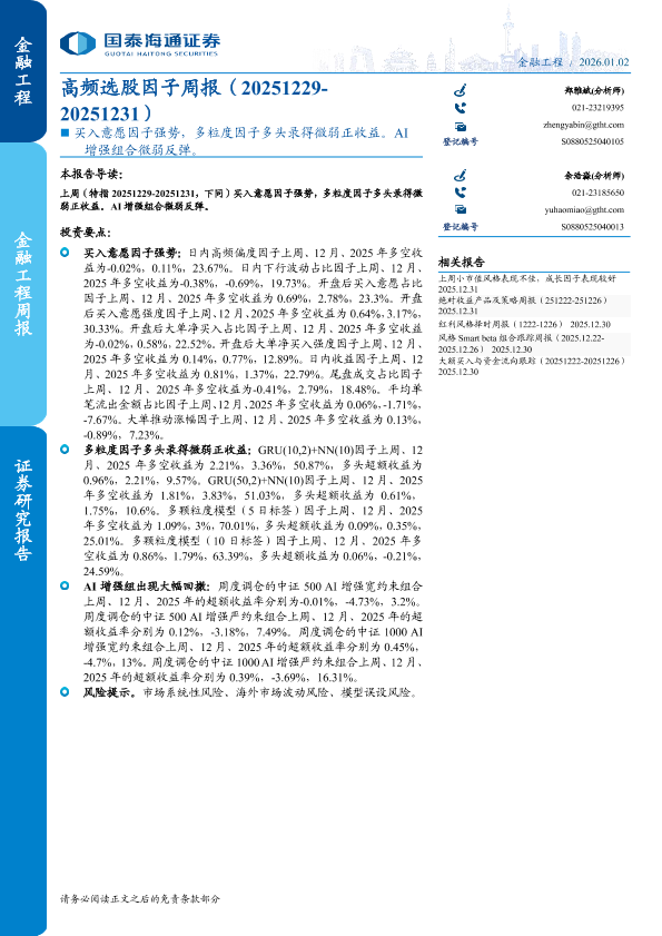 【国泰海通证券】【202512】高频选股因子周报(20251229-20251231)-21页