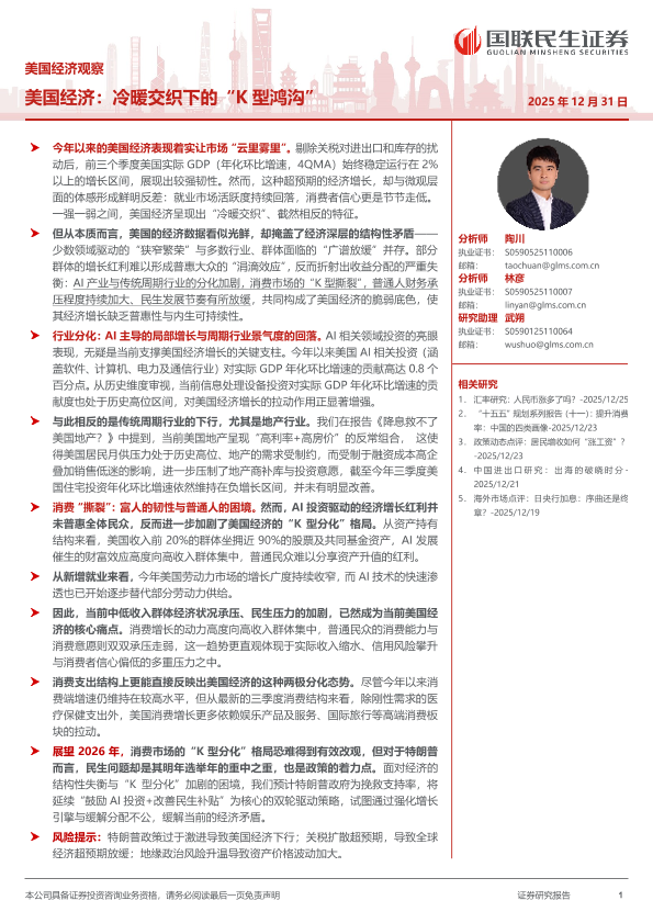 【国联民生证券】【202512】美国经济:冷暖交织下的“K型鸿沟”-15页