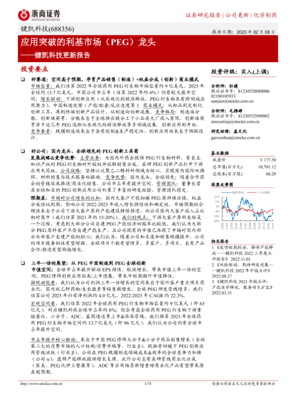 【浙商证券】【20230208】键凯科技更新报告:应用突破的利基市场(PEG)龙头-35页