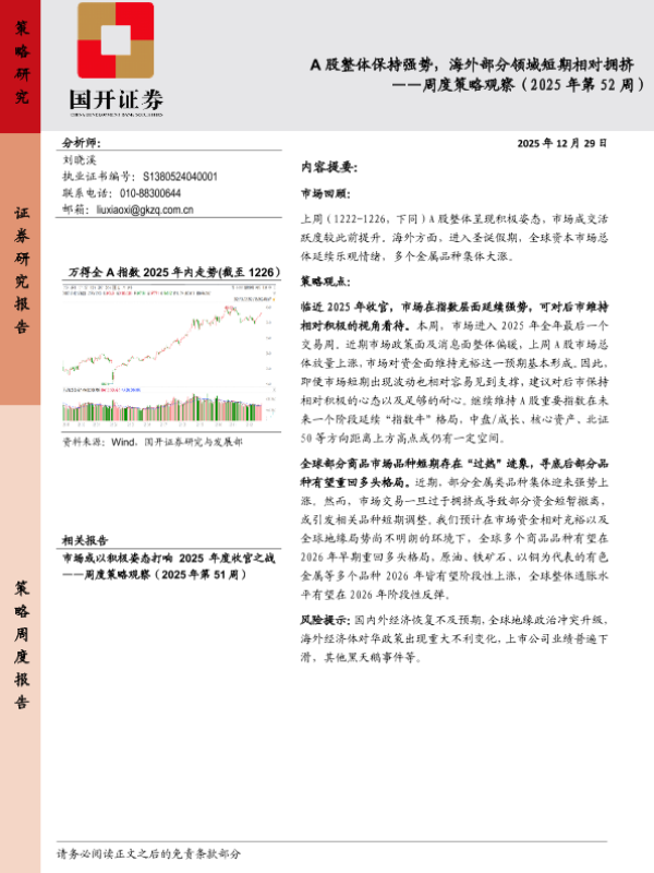 【国开证券】【202512】2026年01月04日更新-【国开证券】周度策略观察(2025年第52周):A股整体保持强势,海外部分领域短期相对拥挤.pdf-11页
