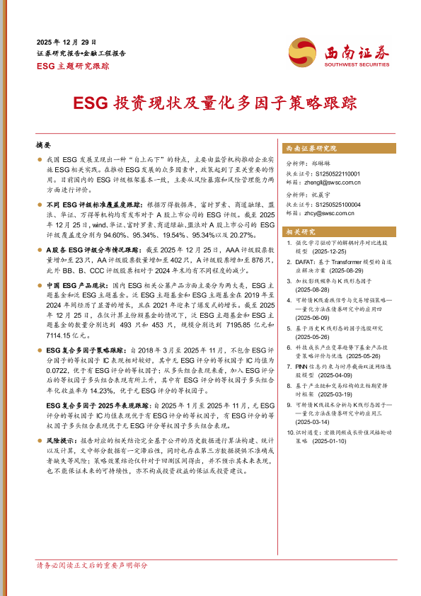 【西南证券】【2025】ESG投资现状及量化多因子策略跟踪-16页