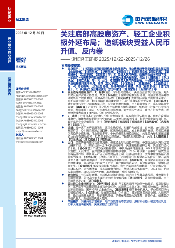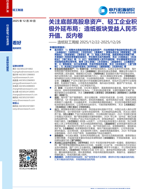 【申万宏源证券】【202512】造纸轻工周报-2025-12-26-32页