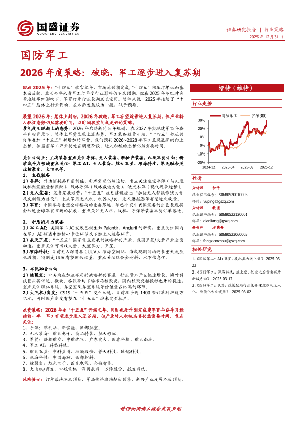 【国盛证券】【2026】2026年度策略:破晓,军工逐步进入复苏期-27页