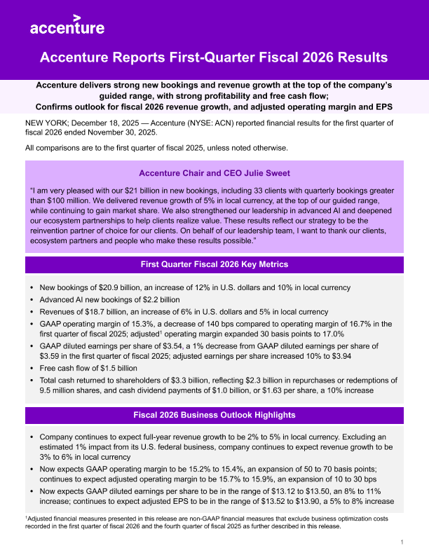 【Accenture】【202601】Accenture Reports First-Quarter Fiscal 2026 Results-12页