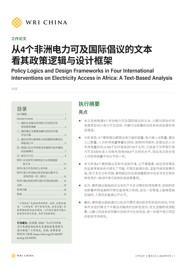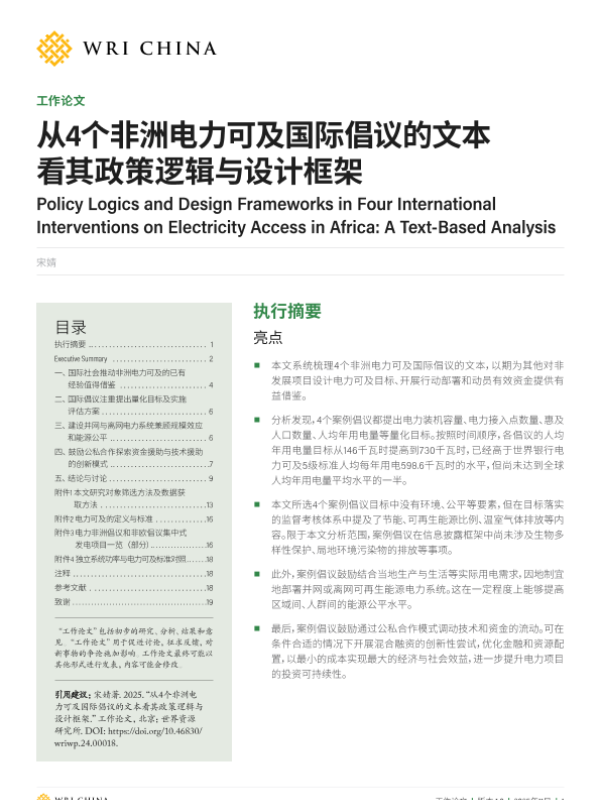 【世界资源研究所】【2025】从4个非洲电力可及国际倡议的文本看其政策逻辑与设计框架-20页
