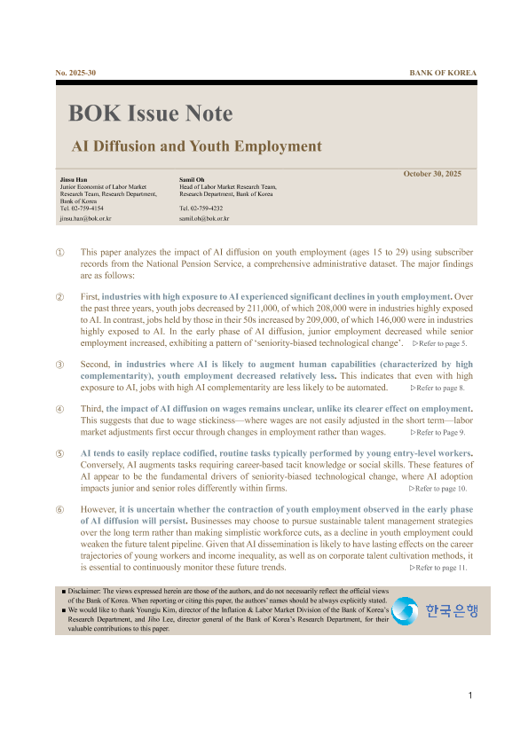 【Bank of Korea】【2025】AI Diffusion and Youth Employment-16页