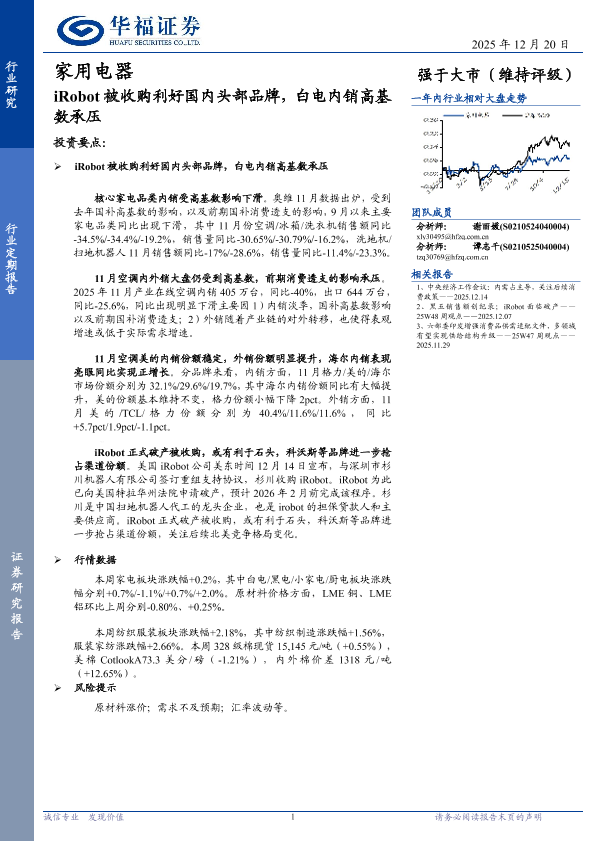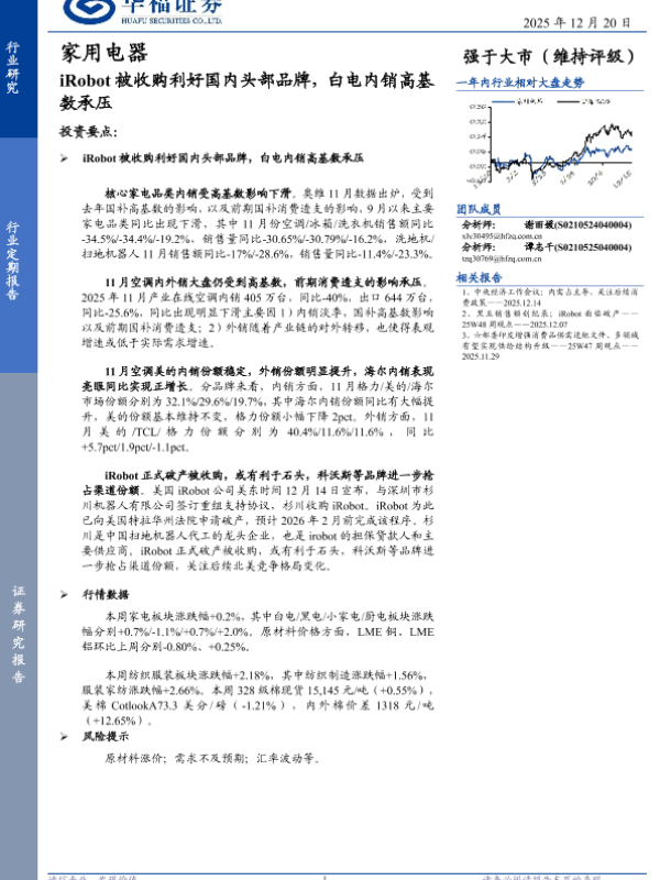 【华福证券】【202512】iRobot被收购利好国内头部品牌,白电内销高基数承压-13页