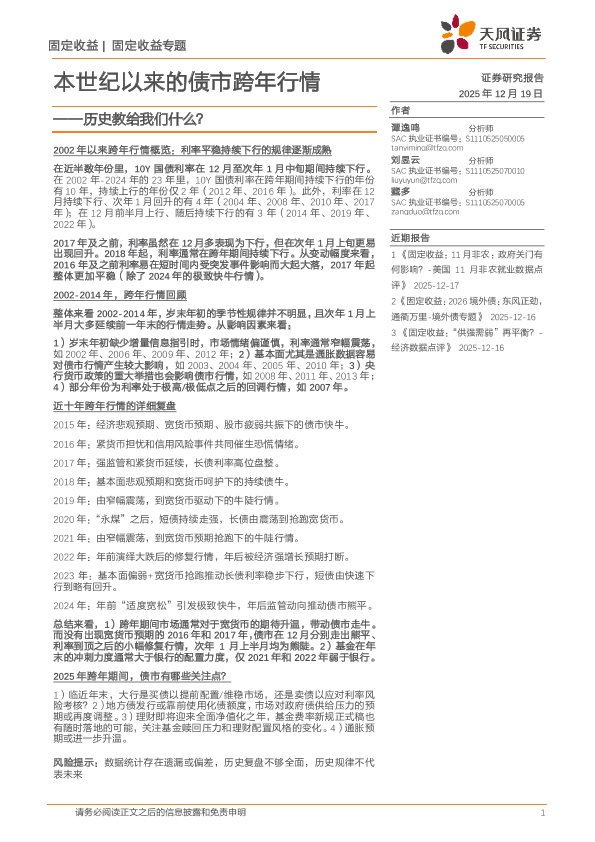 【天风证券】【202512】本世纪以来的债市跨年行情 证券研究报告-19页
