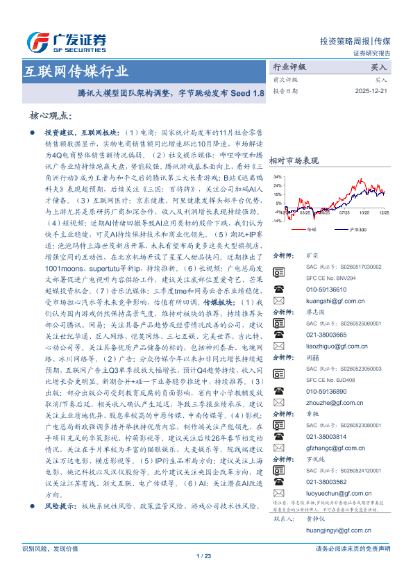 【广发证券】【202512】互联网传媒行业:腾讯大模型团队架构调整,字节跳动发布Seed1.8-23页