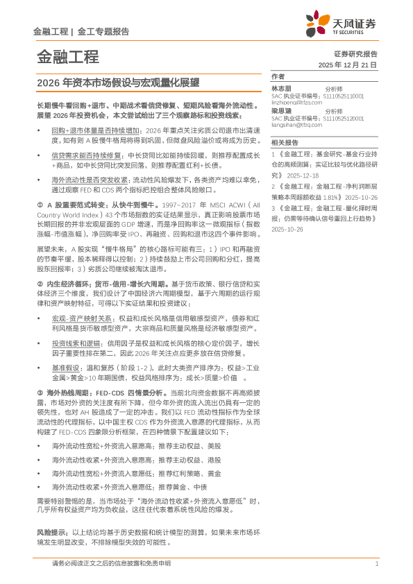 【天风证券】【202512】2026年资本市场假设与宏观量化展望-22页