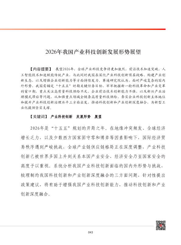 【赛迪研究院】【2026】2026年我国产业科技创新发展形势展望-12页