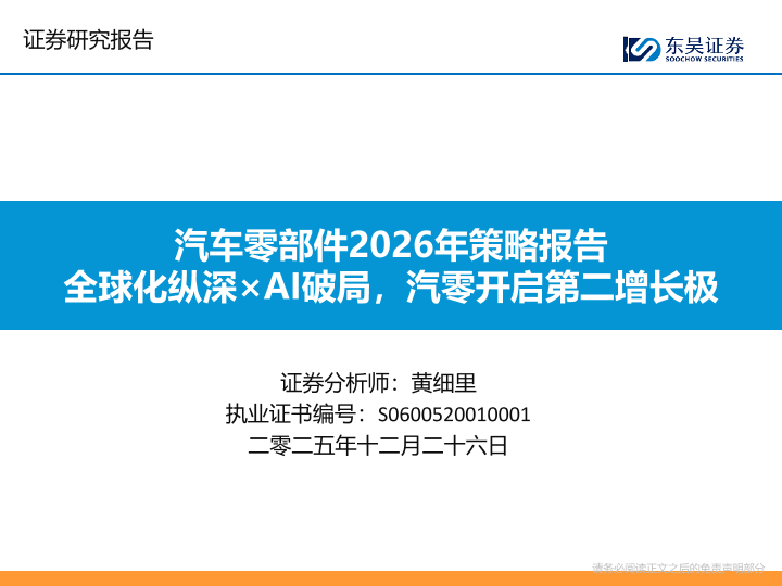 【东吴证券】【202512】汽车零部件2026年策略报告 全球化纵深×AI破局,汽零开启第二增长极-80页
